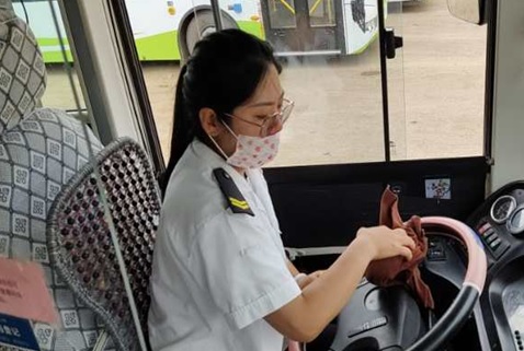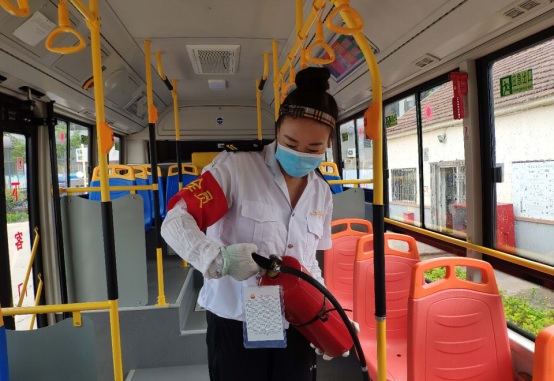 她们从开始的每一趟车消毒,到每天早晚消毒,从清理、喷洒、擦拭,严格进行每一道工序,不放过每一个死角,努力为乘客营造健康放心的公交出行环境。