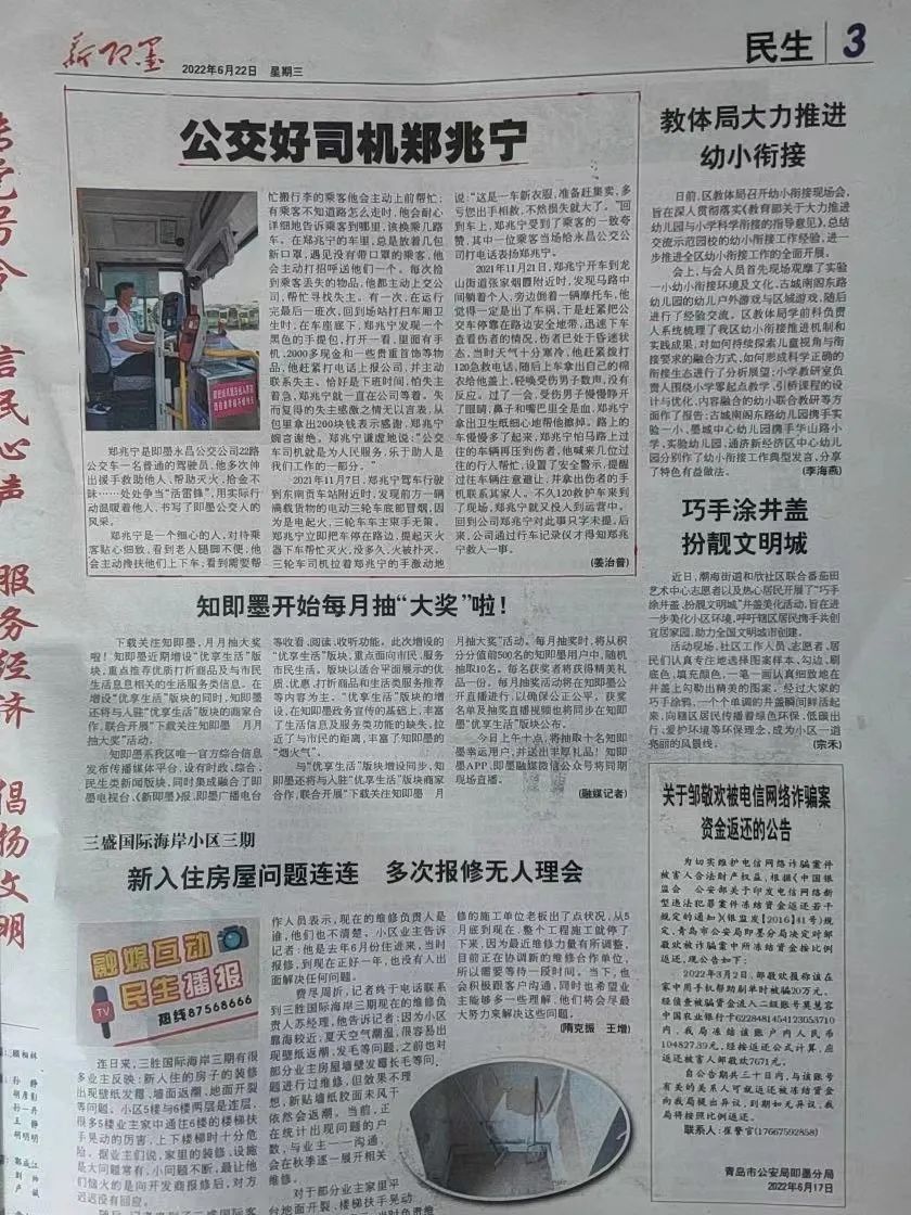 喜讯!永昌公交驾驶员郑兆宁获评“即墨好人之 |